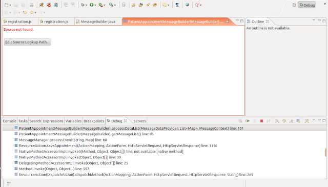 If you run your web application using Java EE Server and try to run it in the debug mode,once you hit the breakpoint , you will get this error ,"Source not found". See the below screenshot.