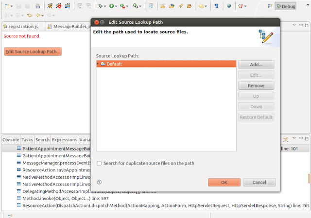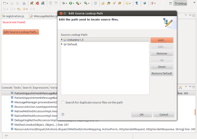 1) Click on "Edit Source Lookup Path". You will get the below "Edit Source Lookup Path" pop-up(New Window).